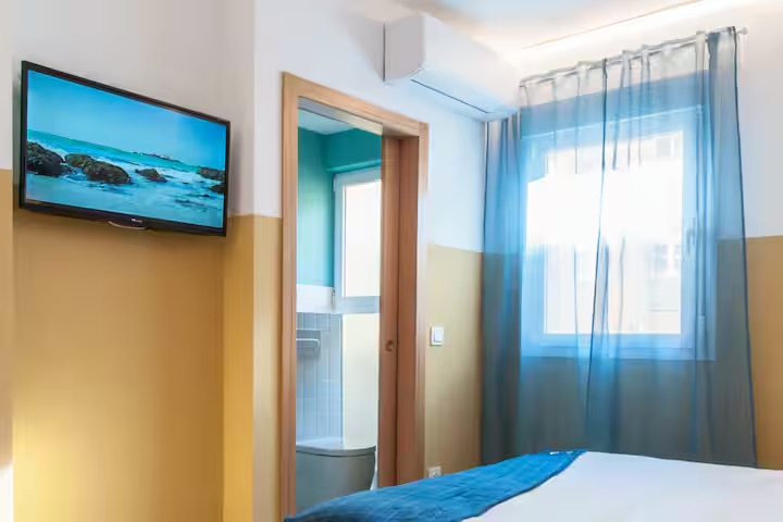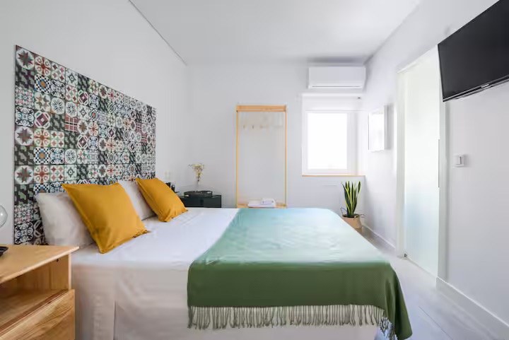Bright, high-quality room offering a private bathroom, queen bed, desk, A/C, and Smart TV. Guests can also enjoy the shared kitchen, dining space, and a cozy balcony.